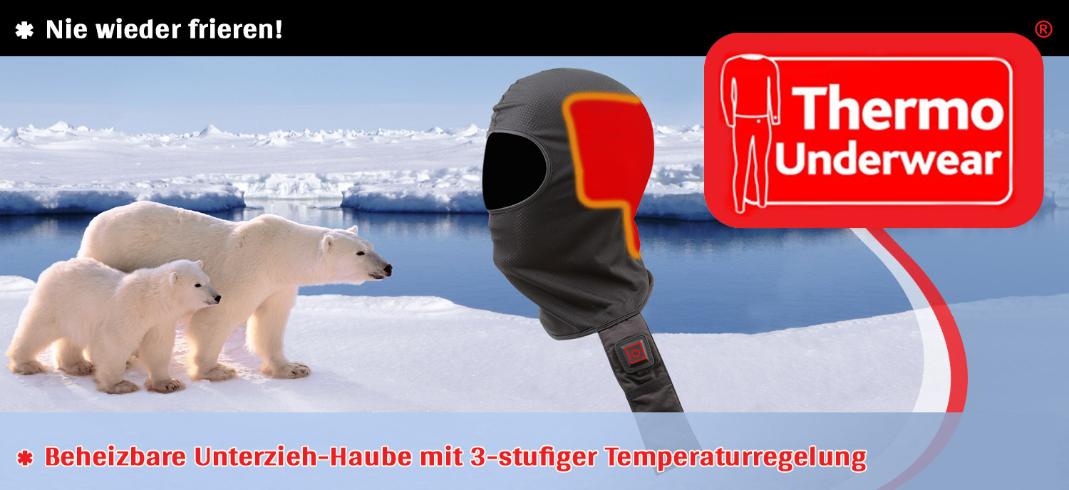 Thermo Hood, das ist eine beheizbare Unterziehhaube, die mit einem Akku genau jene Bereiche wärmt, an welchen Sie sonst frieren: Ohren und Nacken. Die |