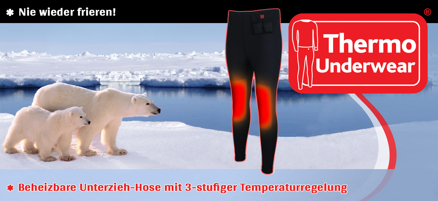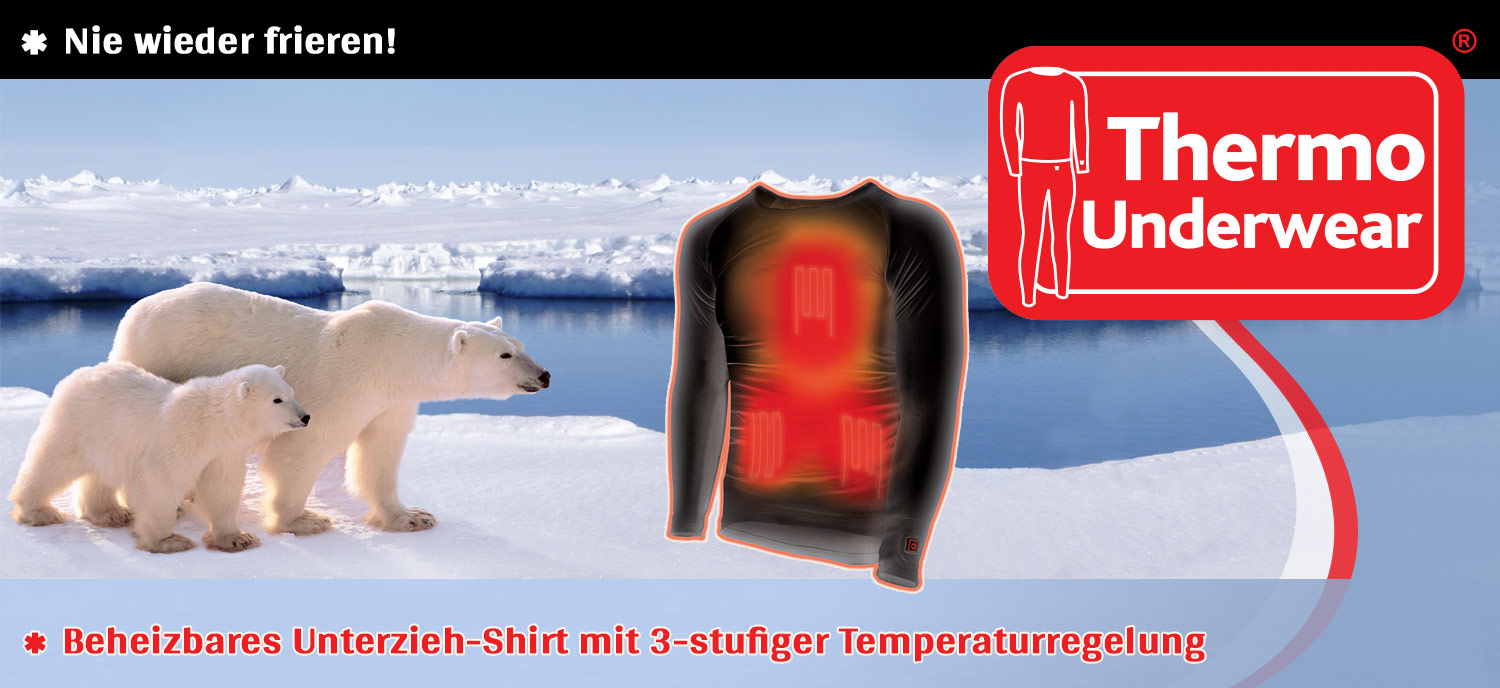 Thermo Underwear ist unsere neueste Entwicklung, eine beheizbare Unterwäsche, die optimal unter Ihre Freizeit-, Sport- und Alltagskleidung passt. Da die Unterwäsche direkt am Körper getragen wird, sind die Heizelemente hier besonders effektiv und bieten Ihnen einen optimalen Kälteschutz.